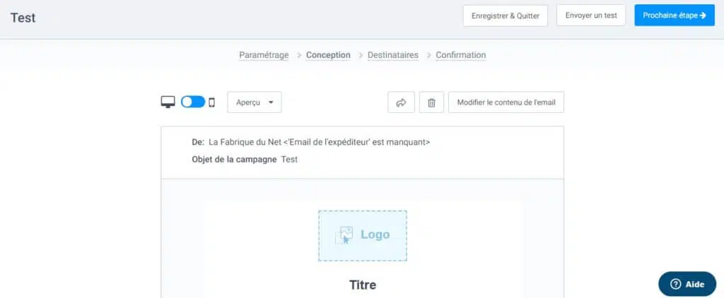 Une fois votre email enregistré et, juste avant la sélection de vos destinataires, vous avez un dernier aperçu de votre email. Ce qu’il y a de pratique ici, c’est que vous voyez le rendu exact de l’email sur ordinateur mais aussi sur mobile. Très pratique pour déceler les erreurs de conception éventuelles.