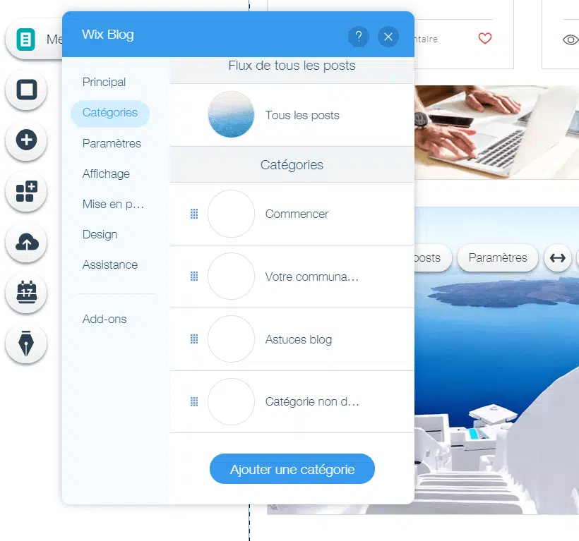 - Ajouter des catégories : Wix Blog permet d’organiser les articles de votre blog par catégorie. A chaque fois que vous créez un article, vous choisissez la catégorie correspondante. Les catégories apparaissent dans le menu du blog, permettant aux lecteurs d’accéder aux sujets qui l’intéressent en un clic.