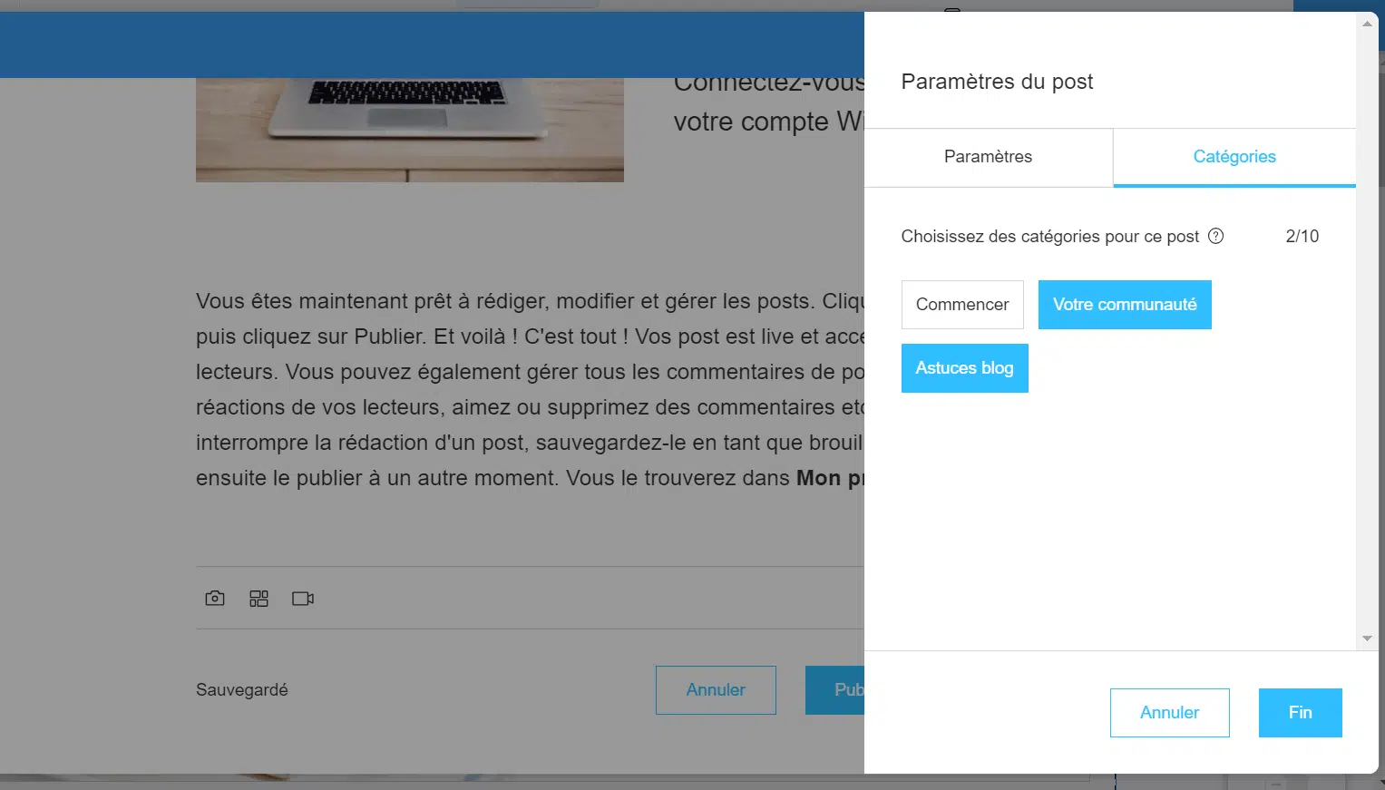 Les posts sont sauvegardés en temps réel, ce qui est bien pratiques et permet d’éviter les mauvaises surprises en cas de problème de connexion ou de plantage de votre ordinateur.