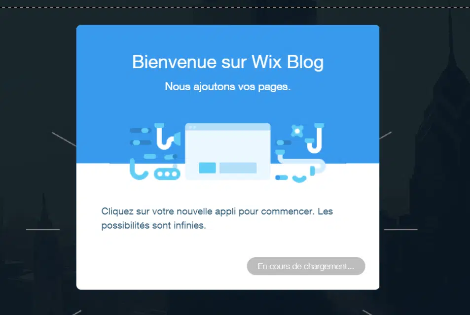 Cliquez sur Ajouter. Cela lance l’installation de Wix Blog sur votre site :