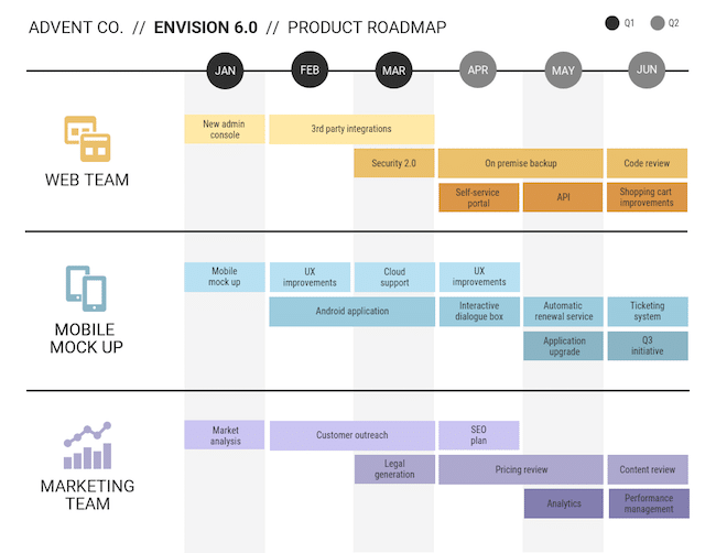 Des couleurs partout, des flèches dans tous les sens, des blocs illisibles ? Vous perdez vos interlocuteurs. Une roadmap efficace tient en un coup d’œil. Optez pour la simplicité graphique.
