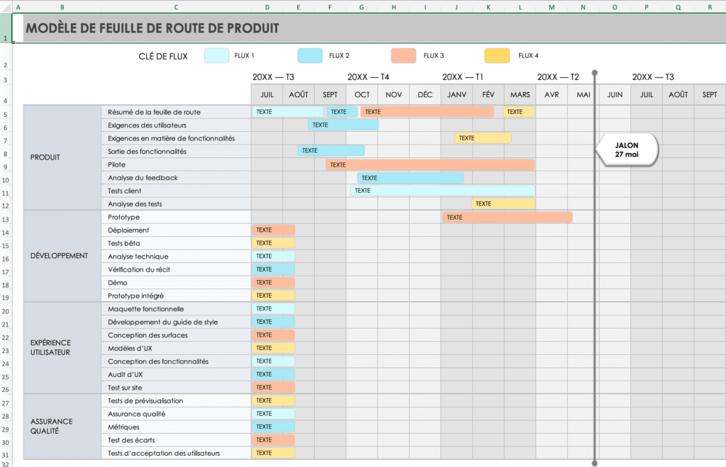 Pas de roadmap sans vision temporelle claire. Pas besoin d’entrer dans le détail des jours. Ce qu’on attend : un aperçu global, lisible en un coup d’œil.