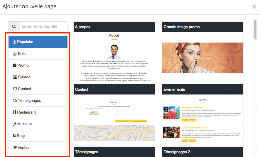 - 1. Vous choisissez un template qui vous correspond dans la bibliothèque de templates disponibles (vous pouvez très bien partir de 0 également)