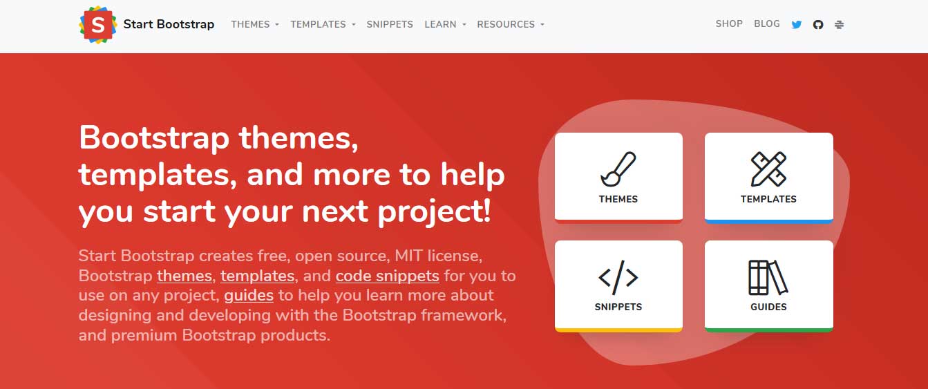 Vous trouverez sur StartBootstrap des thèmes Bootstrap back-end, des landings pages, des portfolios, des thèmes parfaits pour lancer un business en ligne.