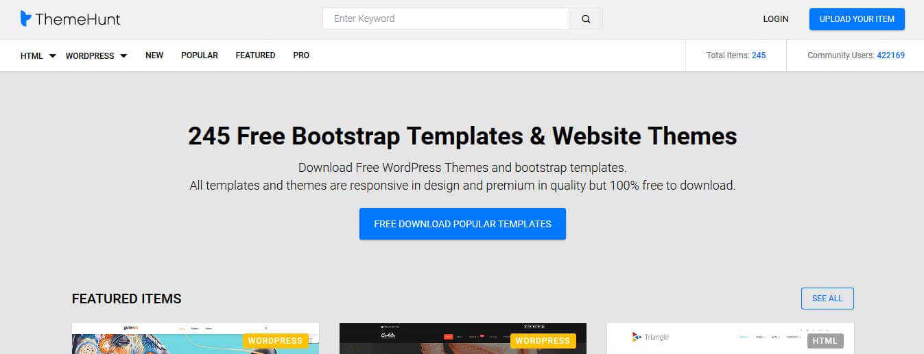 Themehunt a une communauté de plus d’une centaine de milliers de personnes très actives. Sur la plateforme les thèmes Bootstrap gratuits comme payants sont proposés. Ils sont tellement exigeants sur la qualité, l’optimisation de leurs produits, que si vous concevez votre site même avec l’un de leurs thèmes gratuits, votre site sera professionnel et captivant.