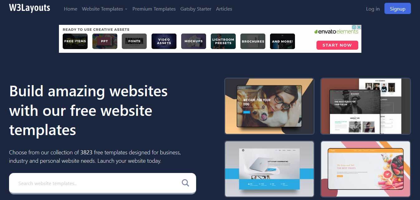 Sur W3LAYOUTS, près de 4000 templates gratuits dans 48 différentes catégories sont disponibles. C’est un marketplace qui fournit tout type de templates.