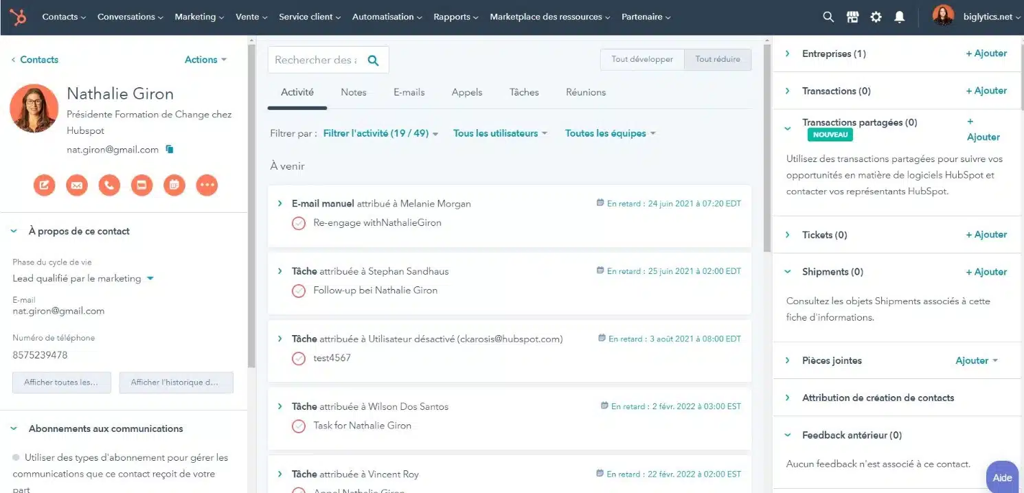 HubSpot CRM est une solution gratuite et évolutive qui permet aux entreprises de gérer leurs contacts, automatiser leur pipeline de vente et suivre leurs interactions clients.