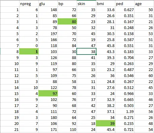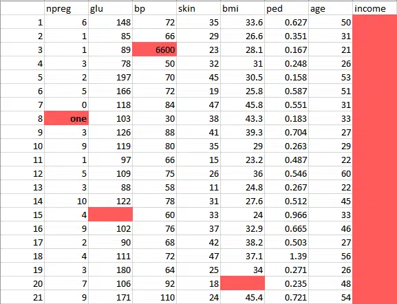 - Dans la colonne npreg, on a « one » au lieu de « 1 ».