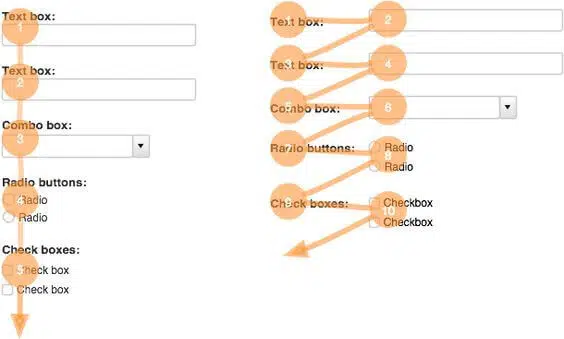 Dans un même registre, des études sur l’analyse du mouvement oculaire ont montré qu’utiliser une mise en page en une seule colonne était préférable à une mise en page sur deux colonnes. La seule exception à cette règle, c’est lorsque vous demandez aux internautes des dates (jours, mois, années) ou des périodes (heures, minutes…). Dans ce cas, il peut être pertinent de positionner les questions côte-à-côte.