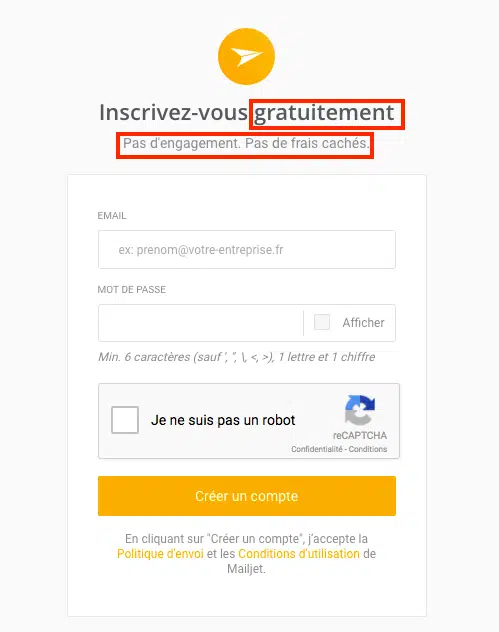Ne cochez pas la case « Je m’inscris à la newsletter » par exemple. Cela peut être vu négativement par les utilisateurs et, dans tous les cas les oblige à décocher la case s’ils ne souhaitent pas s’inscrire à votre liste.