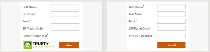 Les gens ont tendance à associer les symboles de sécurité à l’acte d’achat. Leur présence près du formulaire peut décourager certains utilisateurs, qui s’imaginent qu’ils vont devoir payer quelque chose. Faites des tests A/B pour juger de la pertinence ou non de ce type de symboles.