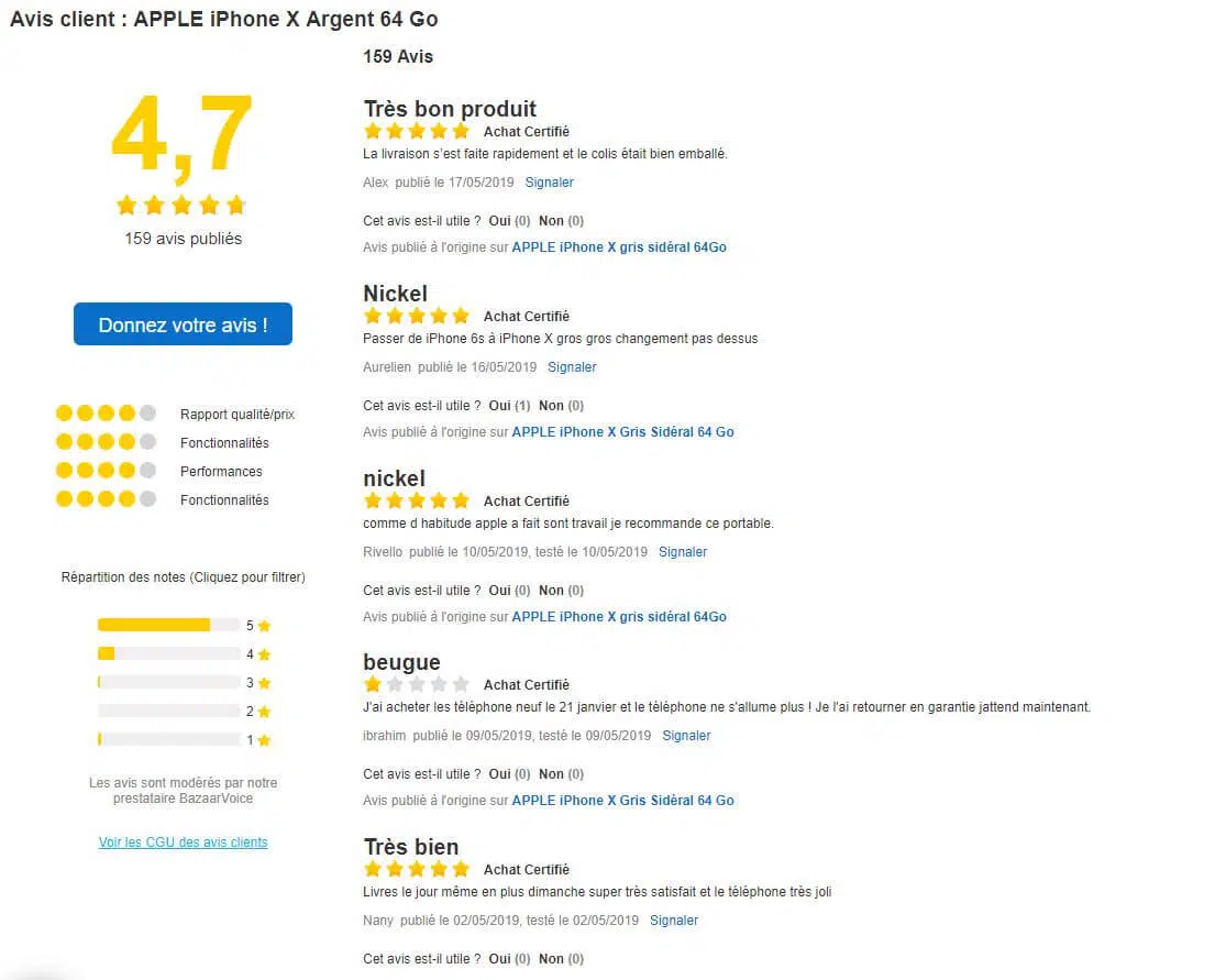 - Utiliser le contenu généré par l’utilisateur sur vos pages produits. N’hésitez pas à proposer sur vos pages produits des photos ou vidéos de personnes qui vous aiment ou vous suivent sur les réseaux sociaux et qui, par exemple, vantent le produit que vous commercialisez. Affichez également les avis des clients. Ce type de contenu est particulièrement intéressant dans le sens où il va permettre d’apporter du contenu frais, d’ajouter des mots-clés et d’allonger la visite des internautes qui vont les lire. Tout du bon pour votre référencement SEO e-commerce.