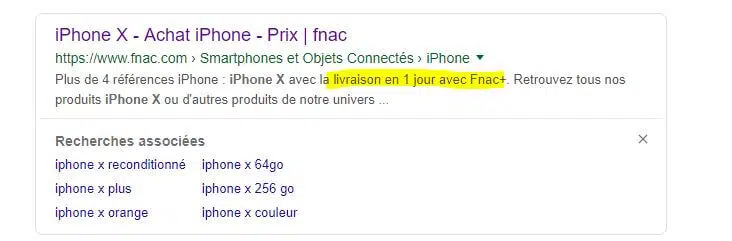 - Bien optimiser vos meta descriptions. Pour y parvenir, ne vous contentez pas d’y placer vos mots-clés. S’ils doivent être présents, ils peuvent être accompagnés d’arguments de vente comme « Livraison gratuite » ou « Meilleur prix garanti » afin d’inciter les internautes à cliquer. Pensez également à intégrer des éléments différenciants (avis clients, délais de livraison, labels de confiance) pour améliorer la visibilité dans les résultats enrichis, ce qui peut contribuer à un meilleur taux de clic et à un meilleur référencement.