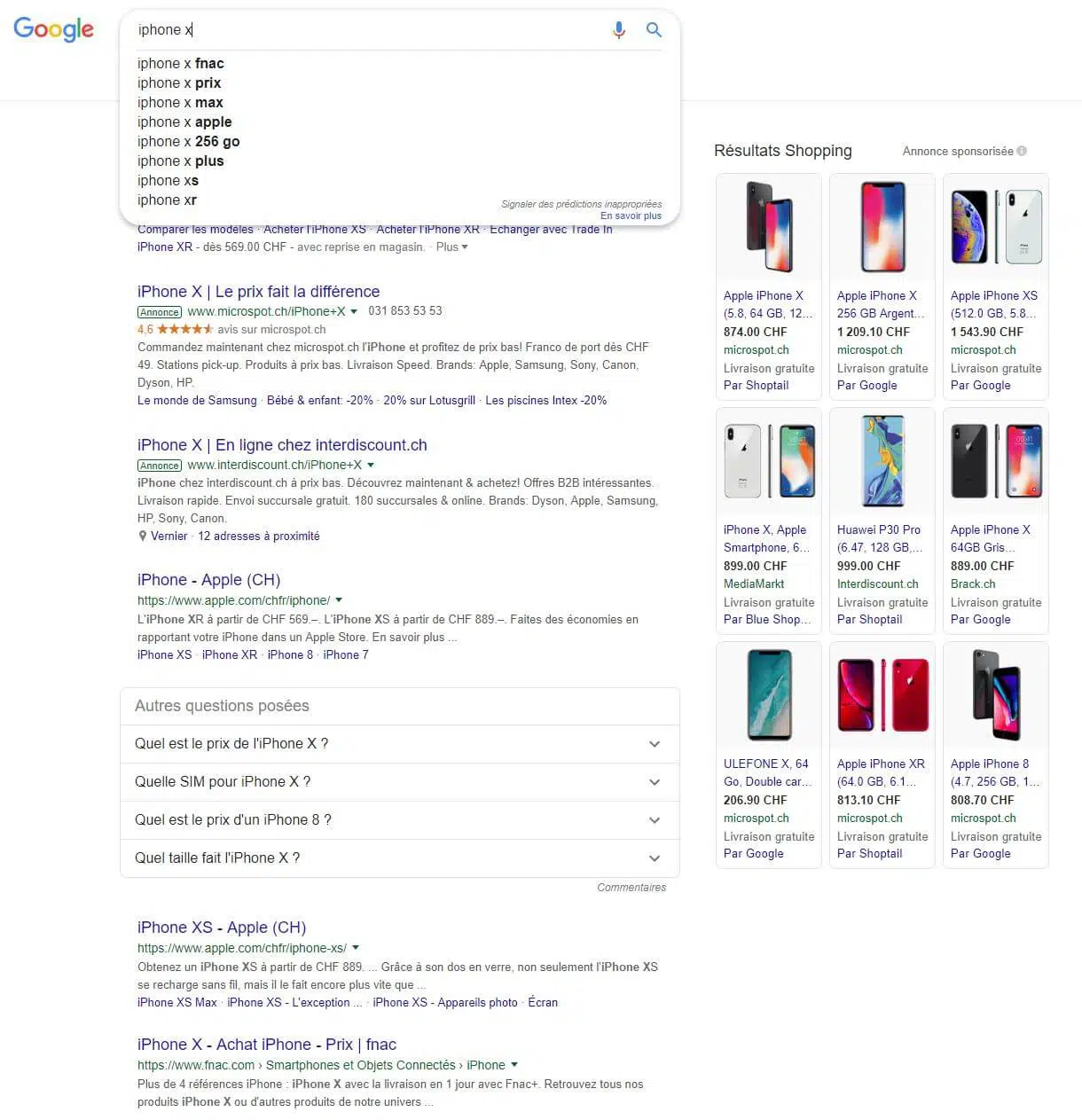 En parallèle, recherchez de nouveaux mots-clés sur lesquels référencer chaque page de votre boutique en ligne. Afin de trouver de nouveaux mots-clés spécifiques, allez sur Google et saisissez le nom du produit. Voyez quelle page sort en premier dans les résultats du moteur de recherches et copiez l’URL.