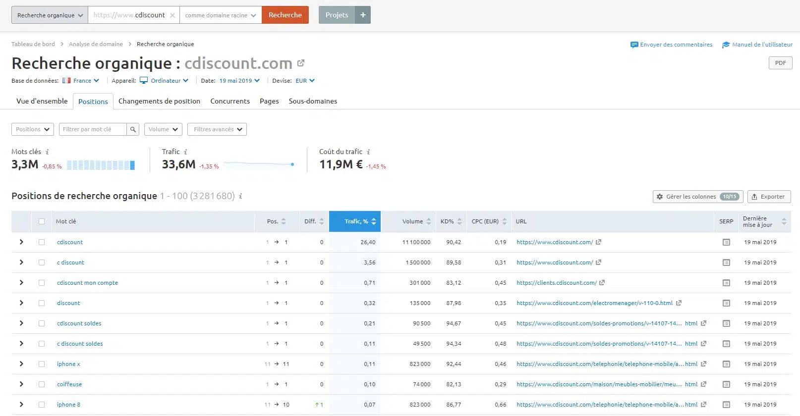 Afin de générer davantage de trafic vers les différentes pages de votre boutique en ligne, il est intéressant de connaître les mots-clés sur lesquels elles sont déjà référencées.