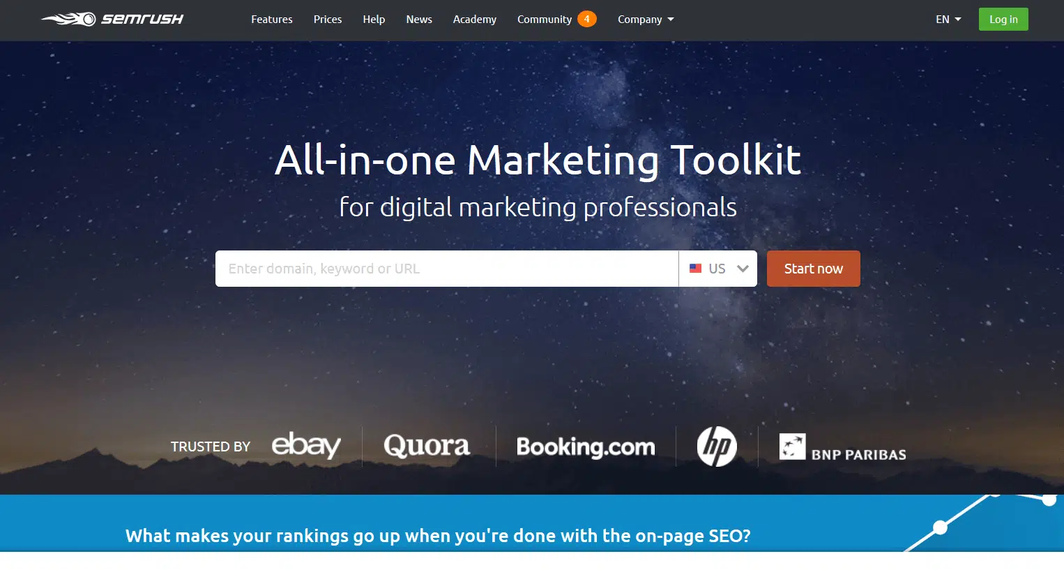 L’un, si ce n’est le, des outils les plus utilisés en matière de web marketing. Adoubé par tous les experts du SEO, SEMRush est une solution « all-in-one » très puissante en matière de stratégie SEO. L’outil propose désormais une interface multilingue, facilitant son utilisation pour un public international.