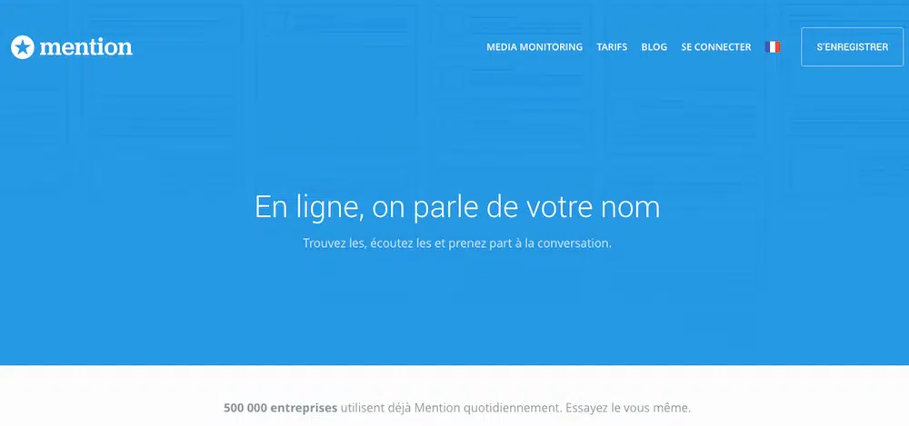 Mention est un outil de veille média et sociale lancé en 2012. Créé par Edouard de la Jonquière, Arnaud Le Blanc et Didier Forest, Mention permet à ses utilisateurs d’être informés en temps réel, grâce à des notifications, sur les personnes qui « mentionnent » leur nom sur les réseaux sociaux, les sites d’actualité, les blogs, les forums, etc. Disposant depuis 2014 de locaux à New York (en plus de Paris), Mention compte aujourd’hui une large base d’utilisateurs répartis dans de nombreux pays, dont de nombreuses entreprises souhaitant mieux gérer leur e-réputation. Mention a signé un partenariat avec Buffer en 2013. L’outil a été adopté par les community managers de sociétés aussi prestigieuses que Microsoft, Spotify, GitHub ou Century 21.