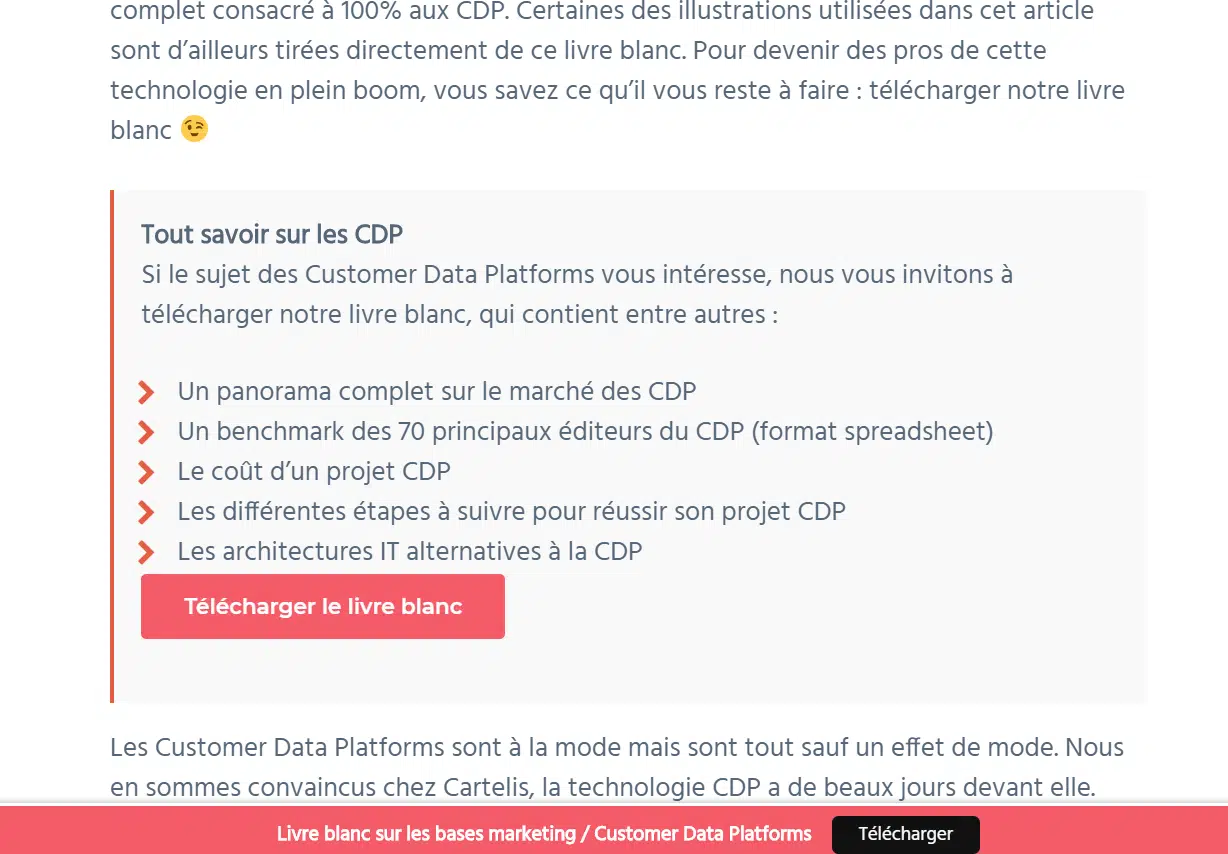 Mais il faut également savoir que les CTA ne fonctionnent pas toujours. En effet, pour que ces derniers soient efficaces, il faut, bien évidemment, que vous ayez des ressources de qualité à proposer à vos clients. Sans cela, vos CTA ne fonctionneront pas.