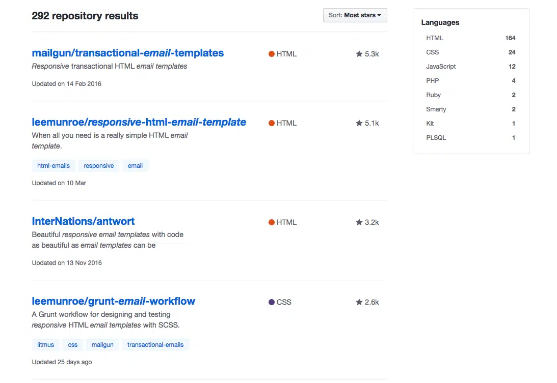GitHub est une plateforme incontournable pour héberger et partager des projets open source, dont de nombreux templates email responsives gratuits. En effectuant une recherche sur la plateforme, il est possible de trouver une grande variété de templates régulièrement mis à jour par la communauté.