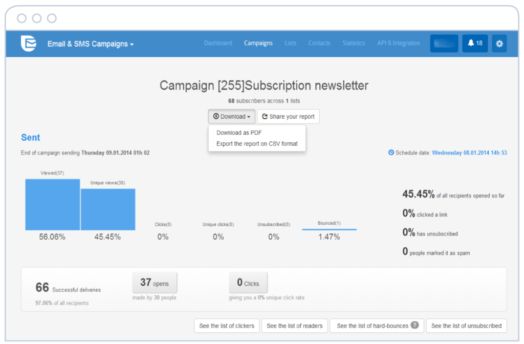 SendPulse propose une vraie plateforme multicanale avec emails, SMS, push, chatbots… C’est un bon choix si tu veux regrouper tes canaux de communication sans multiplier les abonnements.