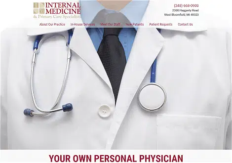 Ce dont il faut s’inspirer : L’immense image du sarrau et du stéthoscope ne fait pas de doute : vous êtes sur un site Web médical. Les mots «Médecine interne» en rouge et en majuscule vous permettent de connaître facilement la spécialité de cabinet. Belle mise en page moderne. Ils font également un très bon travail avec leur page «Meet The Staff».