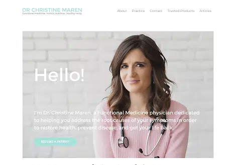Ce dont il faut s’inspirer : Belle mise en page moderne avec beaucoup d’espace blanc. Pas de blouse, mais elle affiche toujours un stéthoscope pour vous faire savoir qu’elle est médecin. Le « Salut! Je suis le Dr Christine Maren » permet de savoir qu’elle est sympathique. Manifestement, elle se positionne de manière à attirer les patients à la recherche d’un médecin moins formel (mais toujours professionnel). Ce site explique très bien ce à quoi s’attendre si vous êtes un nouveau patient. Le site gagne des points dans le fait d’afficher de nombreux avis des patients.