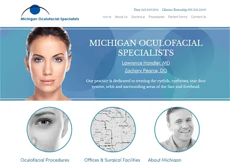 Ce dont il faut s’inspirer : Belle mise en page. Beaucoup d’espace blanc pour vous laisser respirer. Belle palette de couleurs. Biographie bien faite pour chacun des médecins. Liste complète des procédures et des services qu’ils offrent, avec explications. Bon usage des «badges de confiance» indiquant les associations auxquelles appartiennent les médecins. Globalement, un site simple mais efficace.
