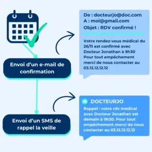 - Étape 3 : Un second SMS est envoyé une heure avant le rendez-vous pour rappeler le client.