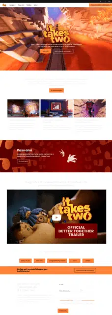 Pour le lancement à venir de son jeu vidéo It Takes Two, Electronics Arts a choisi de mettre en place une page de pré-lancement riche en informations.