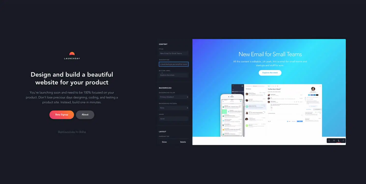 La landing page de Launchday est simple et efficace. En effet, elle est peu chargée, mais elle est fortement attrayante. Les titres vont droit au but, on comprend très vite que la marque s’adresse aux entrepreneurs qui ne peuvent pas consacrer du temps à la création de leurs sites web.