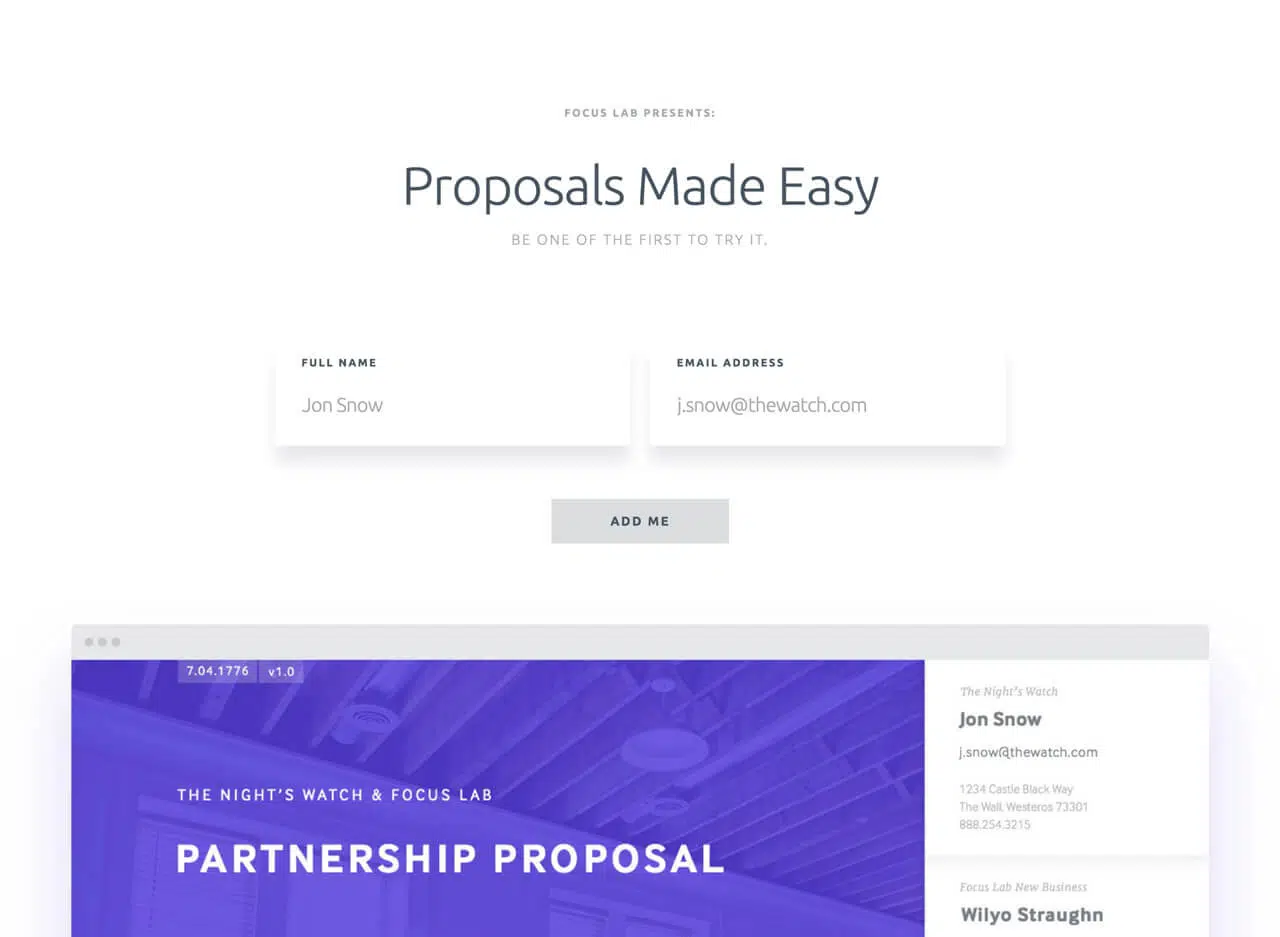 Proposals s’appuie sur un titre court mais percutant et attaque ensuite avec l’exclusivité de l’offre en suggérant d’être le premier à essayer le produit. L’exclusivité est un excellent moyen de susciter l’intérêt des clients potentiels.