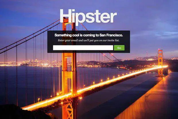 Hipster a mis en place une landing page en apparence très simple. Mais avec une phrase mystérieuse laissant sous-entendre un événement exceptionnel à venir et en offrant la possibilité d’y être invité, Hipster tente ses visiteurs à laisser leur adresse e-mail afin d’en savoir plus le moment venu.