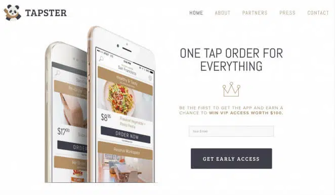 Il est tout à fait possible d’associer un jeu-concours à une page de pré-lancement, comme l’a fait Tapster en proposant un cadeau d’une valeur de 100$ aux premiers utilisateurs de leur application.