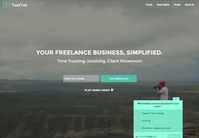 TeekTak a fait le choix de profiter de sa landing page de pré-lancement pour soumettre un sondage à son audience. C’est une excellente idée lorsque votre projet est en cours de création, et qu’il est encore temps d’y apporter quelques modifications.