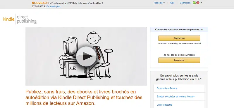 Amazon Kindle Direct Publishing est la plateforme du géant de la Silicon Valley dédié à l’édition numérique. Doté d’un service simple et efficace, qui assure la publication numérique sur la plateforme Kindle, mais porte sur vous la charge de promouvoir et diffuser votre ebook.