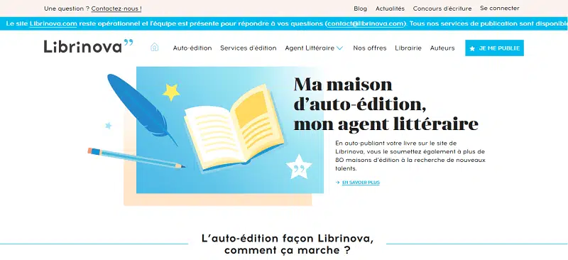 Librinova se donne pour objectif de vous faire repérer par les éditeurs traditionnels. L’entreprise se targue d’obtenir un contrat d’édition pour 1 auteur sur 50, grâce à son réseau dans les métiers du livre, auprès de 200 librairies en ligne et 5000 librairies physiques. Pour s’offrir les services de Librinova, il faut passer par un abonnement annuel.
