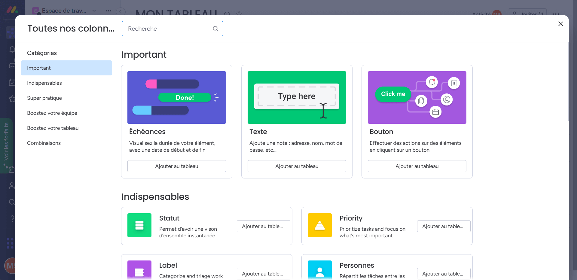 L’ajout de colonnes au tableau de bord