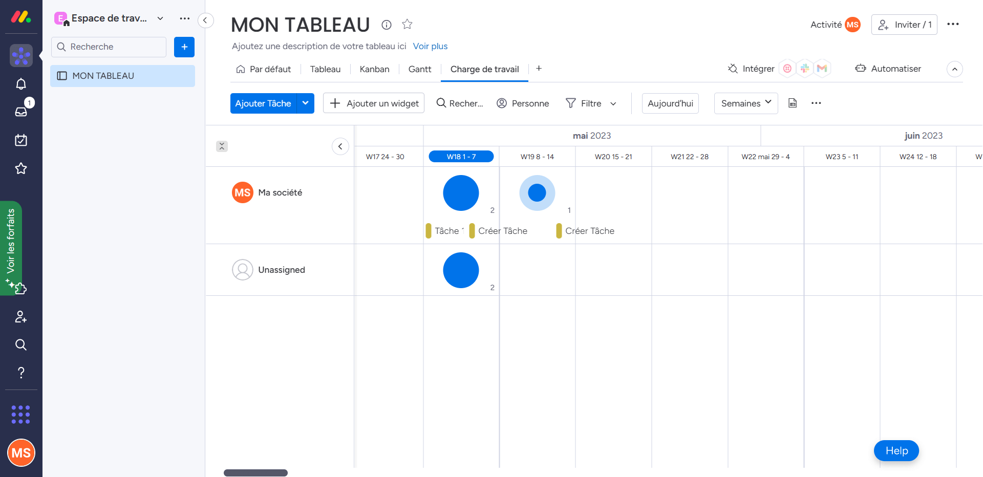 Pour ajouter la vue « Charge de travail » à votre tableau, cliquez sur l’option « Ajouter une vue » en haut de votre tableau et sélectionnez « Plus d’options d’affichage ». Vous pouvez ensuite ajouter le widget « Charge de travail » à votre tableau de bord pour une vue d’ensemble rapide de vos ressources.