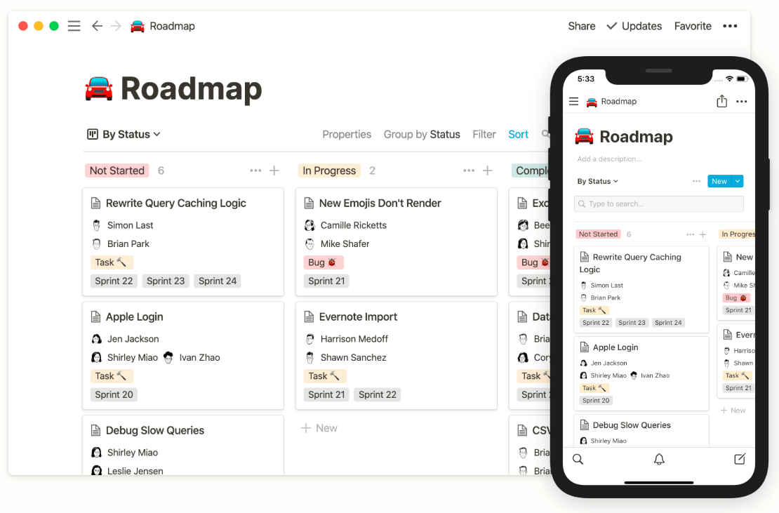 C’est là toute la beauté de Notion : vous pouvez choisir entre la simplicité et la complexité, en fonction de ce que vous voulez faire. Vos collaborateurs pourront sélectionner les données spécifiques qu’ils souhaitent surveiller et définir leur flux de travail optimal. Les tâches manuelles sont automatisées, ce qui simplifie l’intégration dans les bases de données, la planification, etc.