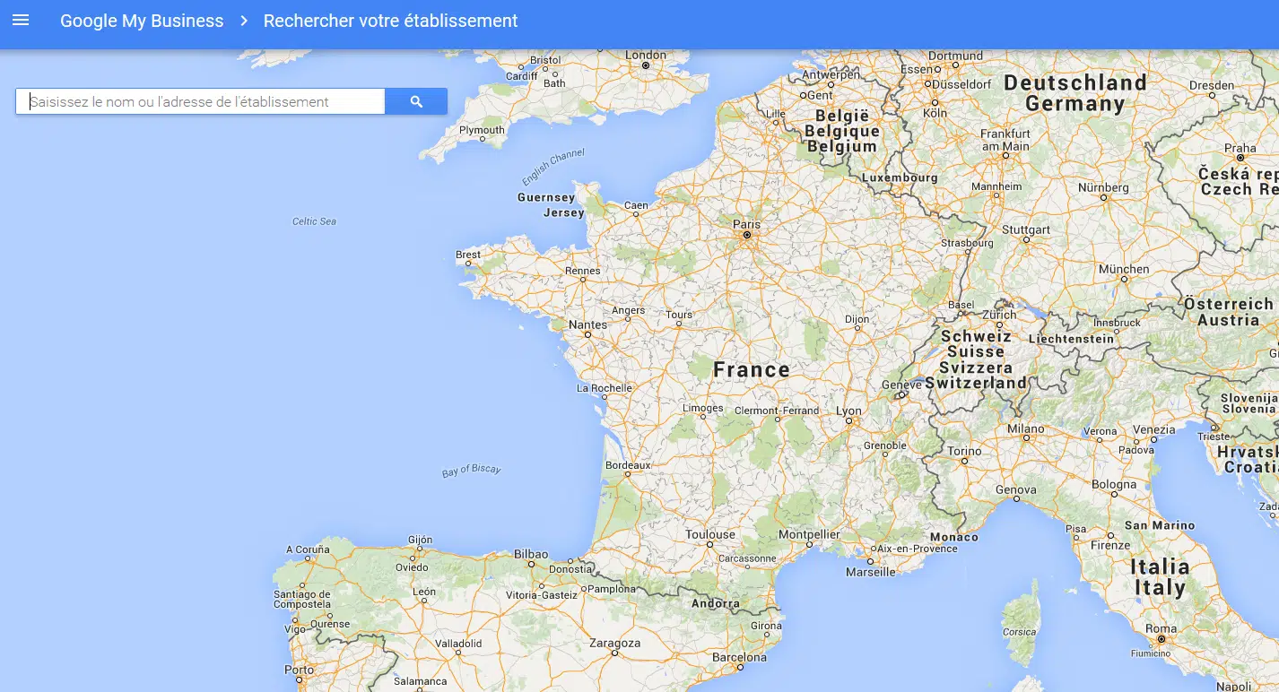 Vous devez ensuite saisir l’adresse de votre établissement. Elle sera géolocalisée sur Google Maps :