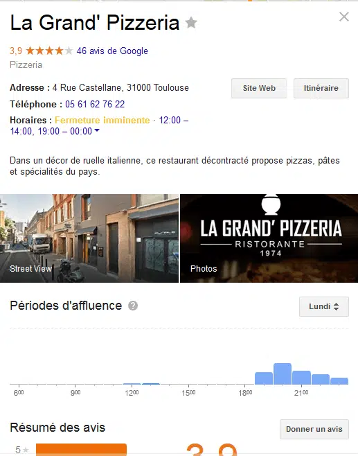- Les horaires d’ouverture de votre établissement : information pratique très importante pour vos clients/prospects. Pensez à mettre à jour vos horaires le cas échéant.