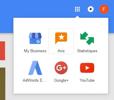 Services directement accessibles depuis votre tableau de bord Google My Business (bouton applications) :