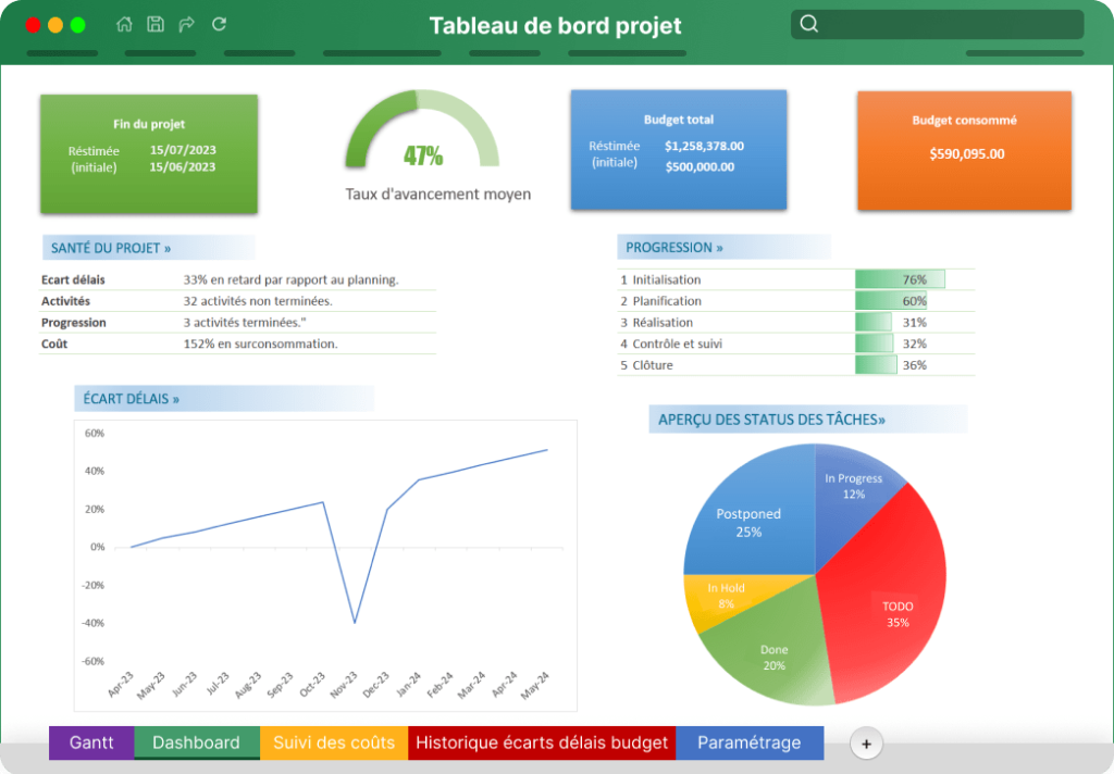 - Les tableaux de bord projet : parce que voir, c’est comprendre. Un bon dashboard, c’est 80 % du boulot de suivi déjà fait.