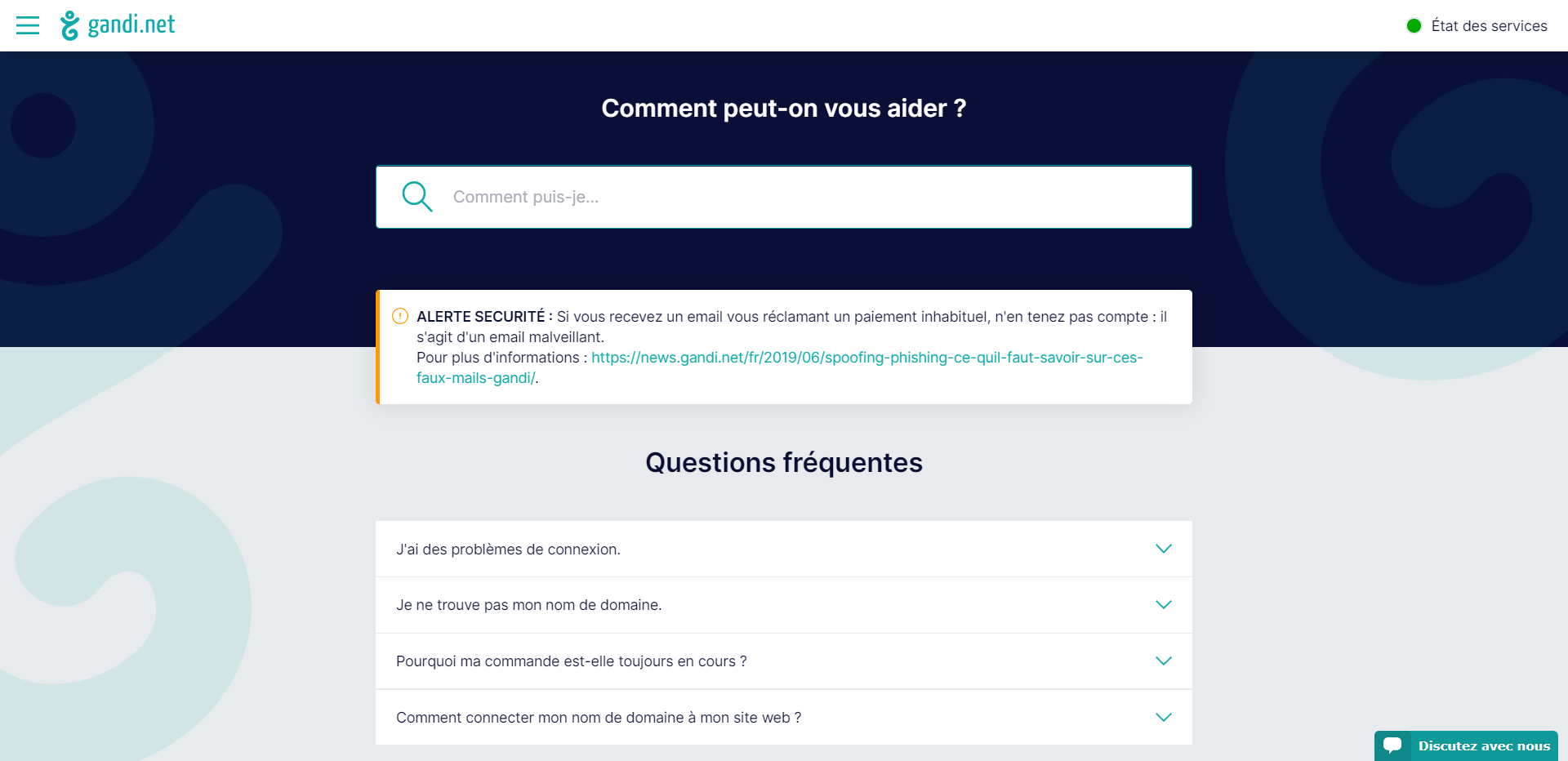 Gandi propose un support technique présent 24h24 et 6j/7. Ce service client est disponible par email ou par live chat, et apporte des réponses à vos questions très rapidement. Les réponses apportées sont de très bonne qualité, et vous permettent généralement de débloquer tous types de situation.
