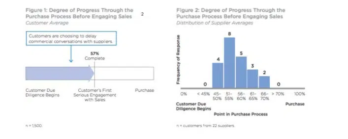 Les moteurs de recherche et les médias sociaux ont changé la façon dont les gens prennent leurs décisions d’achat. La majorité des décisions d’achat B2B débutent aujourd’hui par une recherche en ligne, tandis que les réseaux sociaux professionnels et les recommandations jouent un rôle croissant. Les gens recherchent des informations et ont des conversations en ligne. Ils s’informent sur les options qui s’offrent à eux, y compris comment surmonter leurs défis, les coûts, les critiques etc. Tout est fait à loisir sans avoir besoin de parler à un vendeur.