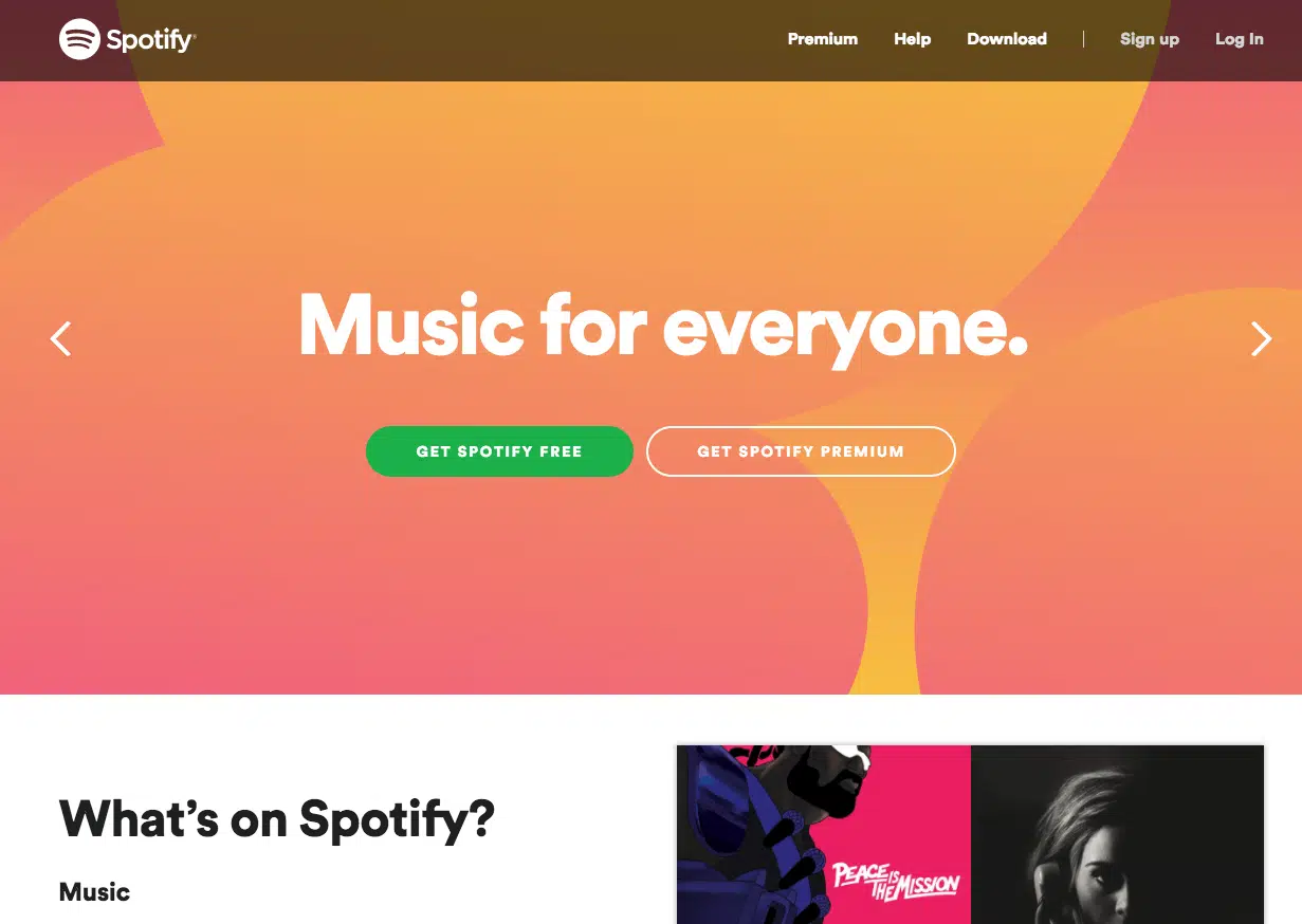 Quel est le problème avec la plupart des sites web ? C’est qu’ils offrent la même expérience page après page à tous les visiteurs. Au lieu de cela, un site web Inbound Marketing utilise les données disponibles pour offrir une expérience personnalisée. Les données sont collectées via les interactions des visiteurs avec votre site. Offrez une expérience plus attrayante avec des appels à l’action personnalisés. Personnalisation basée sur la façon dont ils interagissent avec le contenu ainsi que leurs intérêts et leurs besoins. Ce type d’engagement est connu sous le nom de «marketing contextuel». Le marketing contextuel prend en compte les besoins, les habitudes et les objectifs des utilisateurs. Il crée une expérience sur site personnalisée. Fournir une expérience utilisateur optimale et proposer le bon contenu à la bonne personne, au bon moment, est devenu un standard attendu par les consommateurs, qui plébiscitent la personnalisation. Voici un exemple de la façon dont Spotify utilise le marketing contextuel, lorsque vous n’est pas connecté à Spotify :
