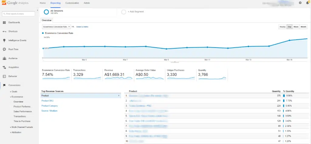 Le tracking ecommerce standard de Google Analytics désigne, de manière générale, un tag qui collecte les données de transaction sur la page de confirmation de commande. Google Analytics utilise ces données transactionnelles et permet aux analystes d’étudier ces transactions à travers des rapports de Conversion Google Analytics.