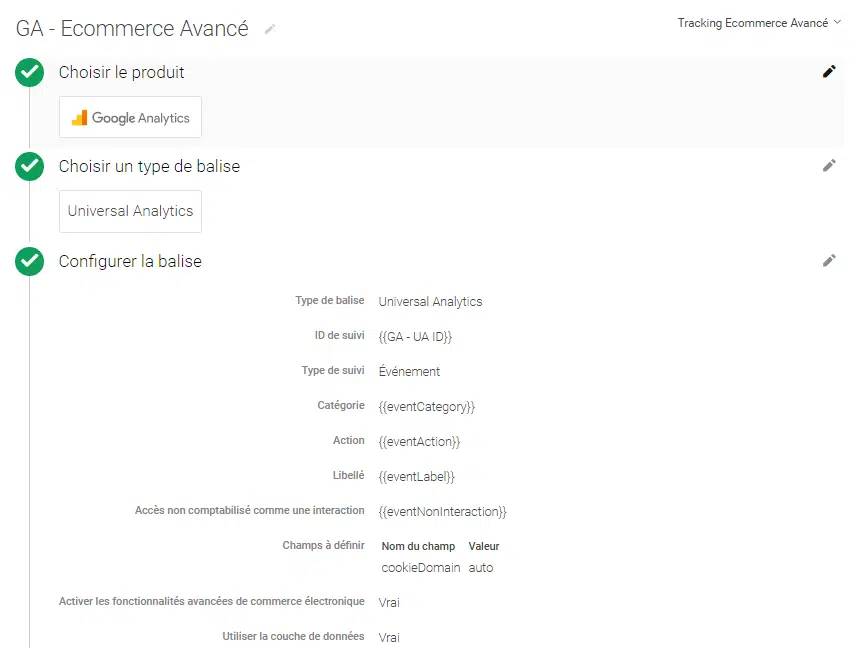 Une fois le plan de taggage déployé vient l’heure du paramétrage du conteneur Google Tag Manager. qui s’effectue en trois étapes.
