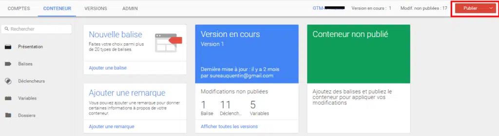 Pour activer l’envoi des données ecommerce amélioré par Google Tag Manager vers votre propriété Google Analytics, il ne vous reste plus qu’à publier le conteneur.
