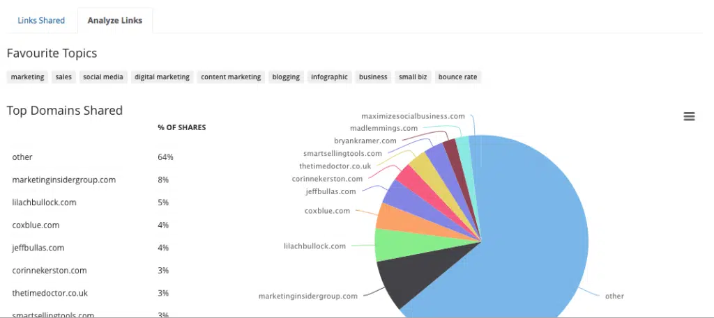 Si vous cliquez sur l’onglet « Analyse Links » en haut de la page de liens, Buzzsumo vous donne un aperçu des principaux domaines partagés.